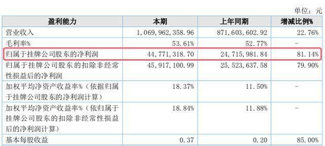 2024年,公司营业收入10.70亿元,同比增长22.76%;净利润4477.13万元,同比增长81.14%;毛利率增长至53.61%;经营活动产生的现金流量净额下滑80%。