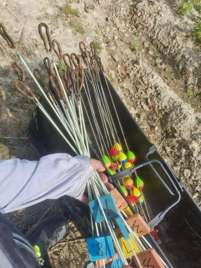 这位网友家住萧山临浦,每次出门都要带上近20个挂上蚯蚓的钓钩。