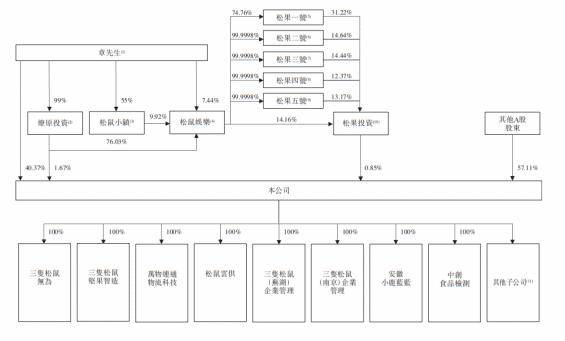 招股书显示,三只松鼠在香港上市前的股东架构中,章燎源控制已发行股份总额约42.04%,包括约40.37%直接权益及透过燎原投资(由章燎源控制的公司)拥有的约1.67%间接权益。
