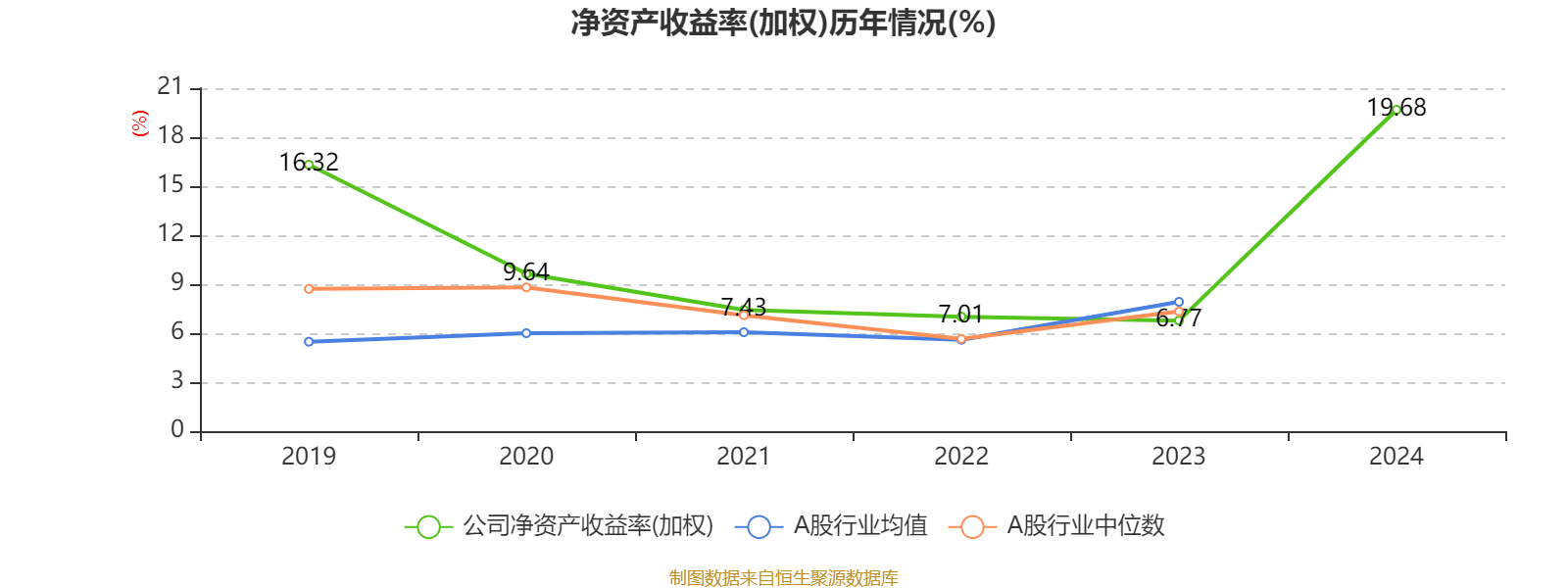 数据显示,2024年公司加权平均净资产收益率为19.68%,较上年同期上升12.91个百分点。