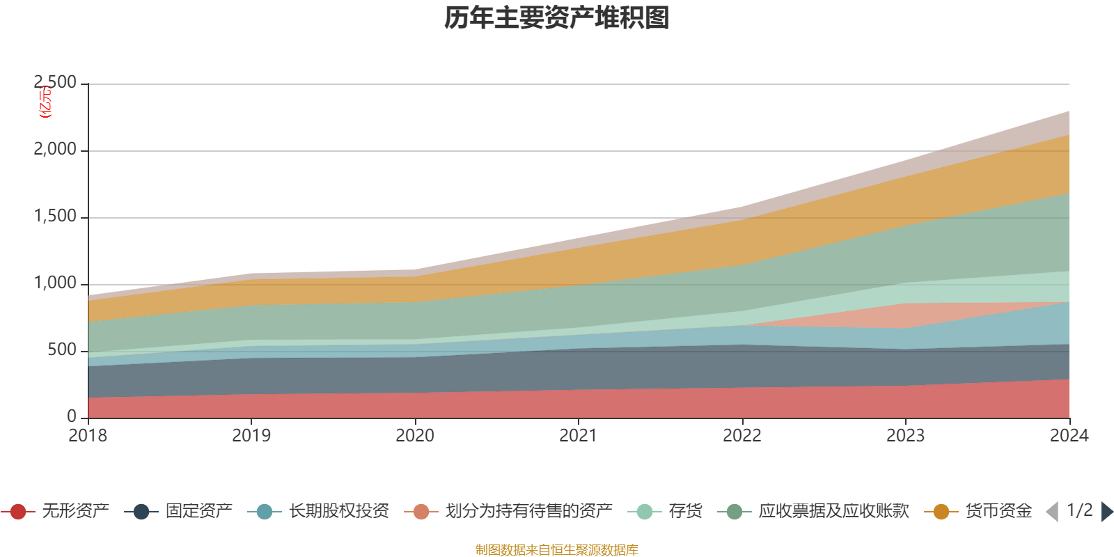资产重大变化方面,截至2024年末,公司划分为持有待售的资产较上期末减少100%,占公司总资产比重下降9.68个百分点;长期股权投资较上期末增加100.12%,占公司总资产比重上升5.55个百分点;应收票据及应收账款较上期末增加36.51%,占公司总资产比重上升3.24个百分点;固定资产较上期末减少3.53%,占公司总资产比重下降2.7个百分点。