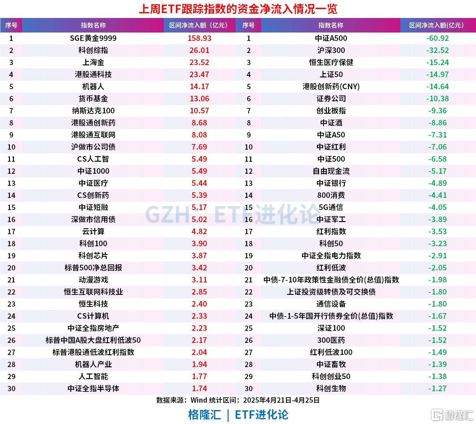 尽管COMEX黄金价格上周触及至3500美元/盎司后回落,但资金依然蜂拥进黄金ETF。SGE黄金999最受资金青睐,上周净流入158.93亿元,上海金合计净流入23.52亿元