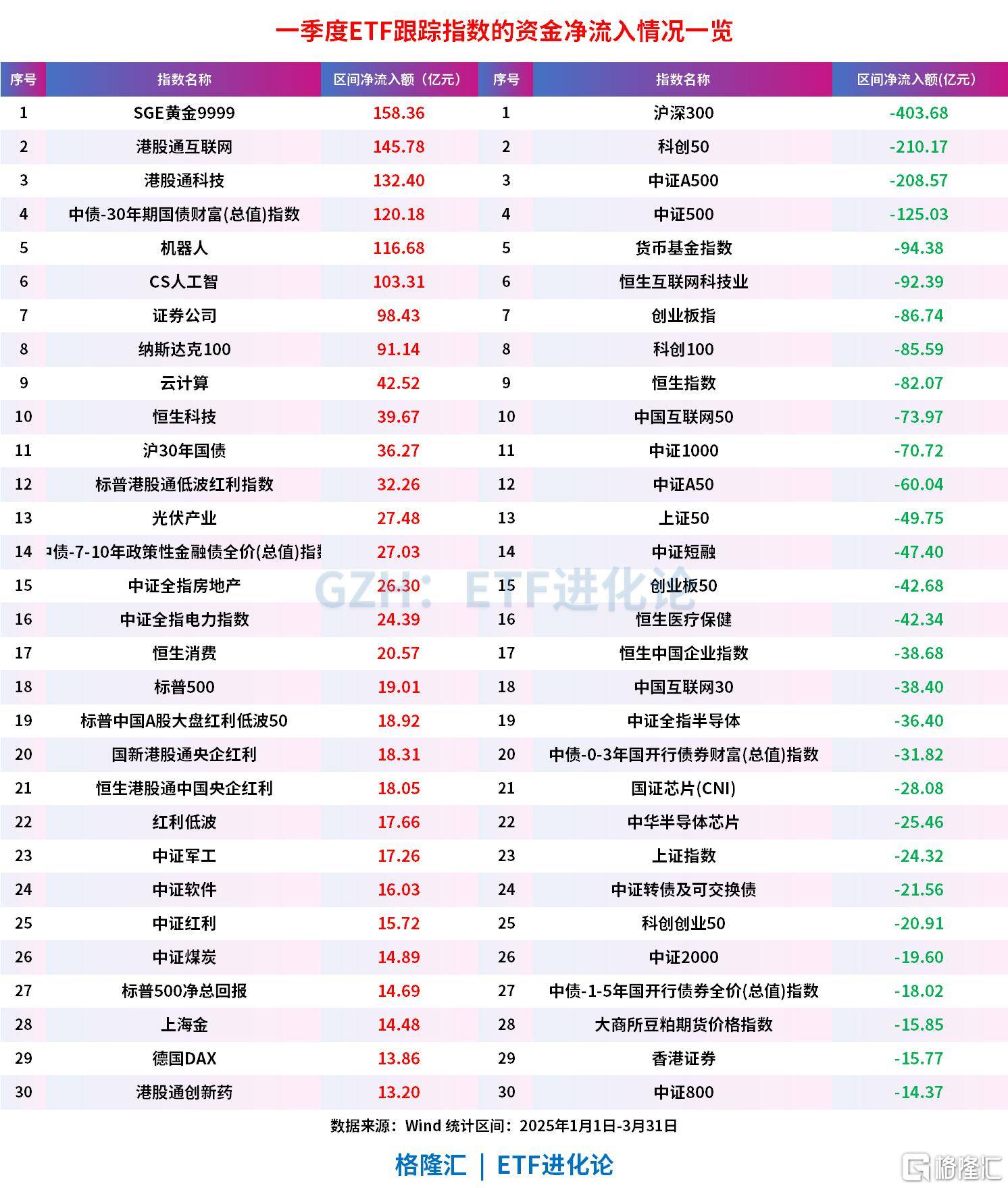 从指数角度来看,SEG黄金9999一季度净流入158.36亿元,上海金指数净流入14.48亿元。