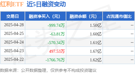 证券之星消息,4月28日,红利ETF(510880)融资买入1369.84万元,融资偿还2369.57万元,融资净卖出999.74万元,融资余额1.5亿元。