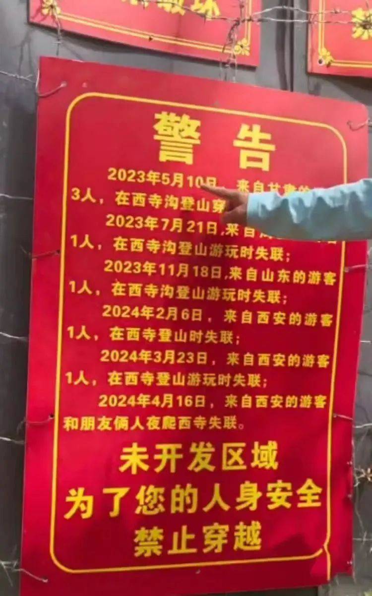 日前,陕西秦岭一峪口张贴警告牌称,该地从2023年5月至2024年4月已有9位游客、“驴友”失联,引发社会关注。