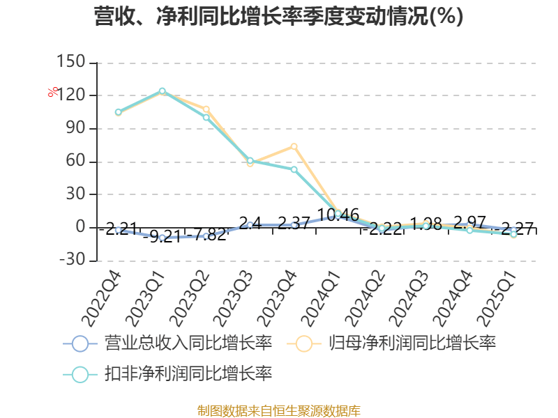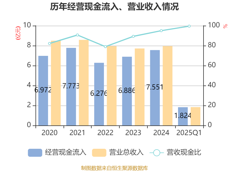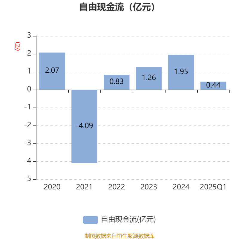 截至2025年一季度末,公司经营活动现金流净额为5094.07万元,同比下降34.36%;筹资活动现金流净额-3966.42万元,同比减少3966.42万元;投资活动现金流净额-115.09万元,上年同期为-5.47万元。