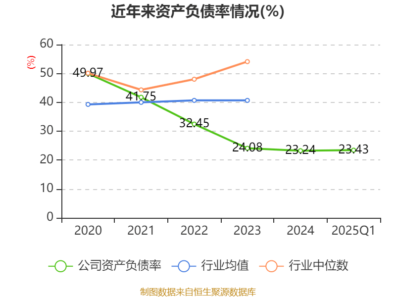 盈利能力方面, 2025年一季度公司加权平均净资产收益率为3.98%,同比下降0.52个百分点。公司2025年第一季度投入资本回报率为3.92%,较上年同期下降0.28个百分点。