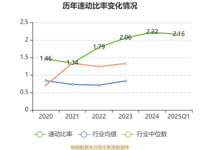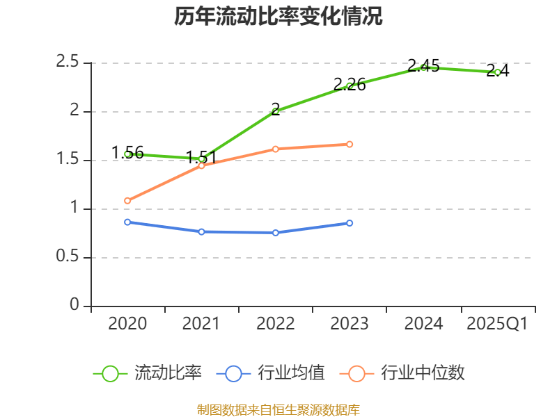 2025年第一季度,公司流动比率为2.4,速动比率为2.16。