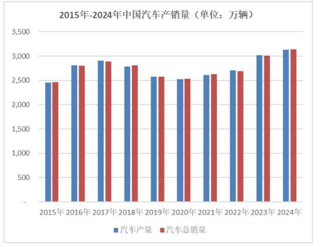 根据中国汽车工业协会统计数据,2024年中国汽车产销分别完成3,128.2万辆和3,143.6万辆,同比增长3.7%和4.5%,其中乘用车产销量分别达2,747.7万辆和2,756.3万辆,同比分别增长5.2%和5.8%。我国汽车产销总量已经连续16年稳居全球第一。