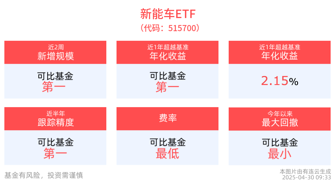 规模方面,新能车ETF近2周规模增长4708.27万元,实现显著增长,新增规模位居同类第一。