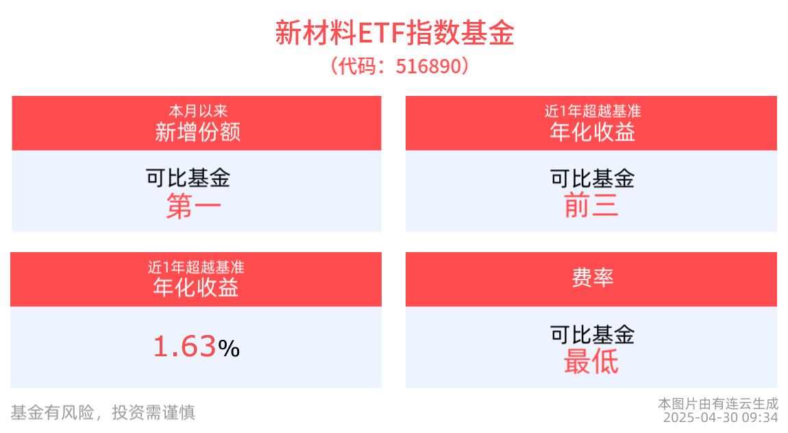 份额方面,新材料ETF指数基金本月以来份额增长200.00万份,实现显著增长,新增份额位居可比基金1/7。