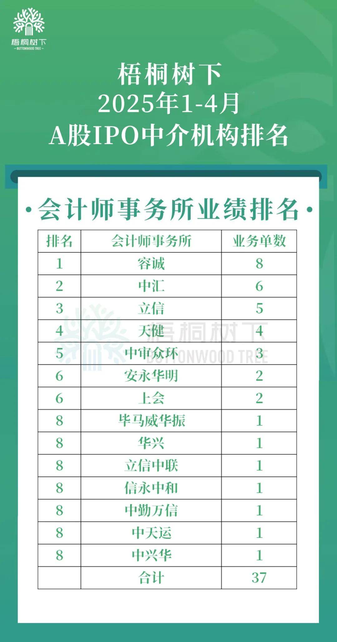 2025年1-4月,共有14家会计师事务所为这37家新上市公司IPO提供了审计服务。