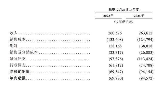 业绩方面,2023年、2024年,大医集团收入分别为2.61亿元、2.64亿元,年内亏损分别为6978万元、9457.2万元,毛利率分别为49.2%、52.7%。