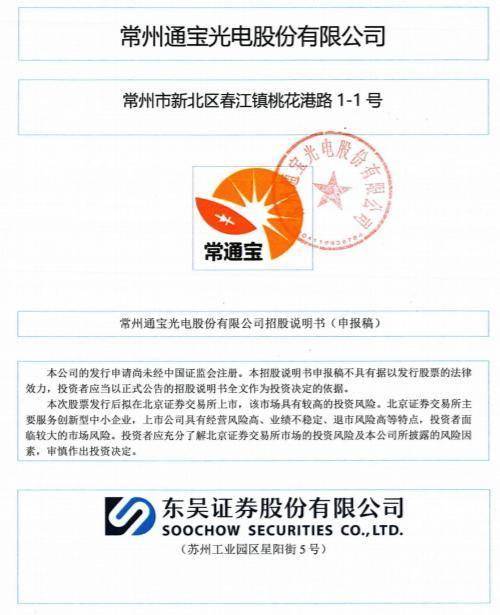 瑞财经 王敏 4月28日,据北交所官网,常州通宝光电股份有限公司(以下简称“通宝光电”)北交所IPO获受理,保荐机构为东吴证券,会计师事务所为天职国际。