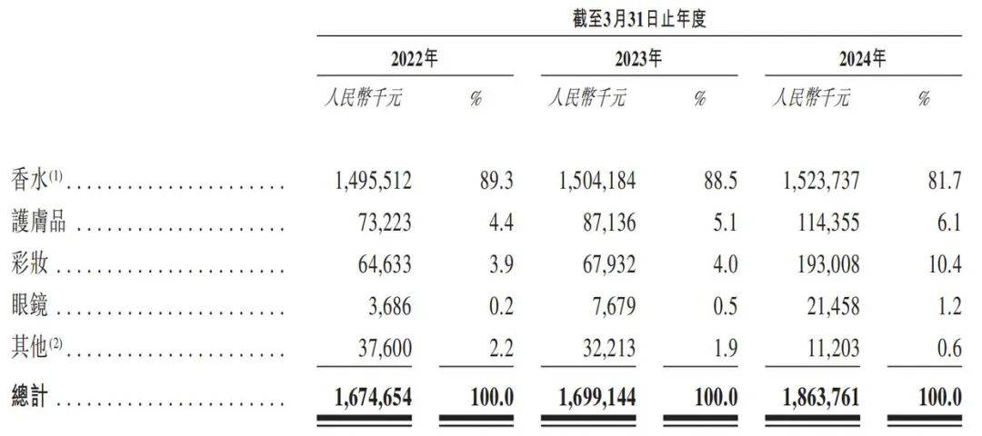 不过,颖通控股最大的收入来源还是香水,每年都占总收入的八成以上。