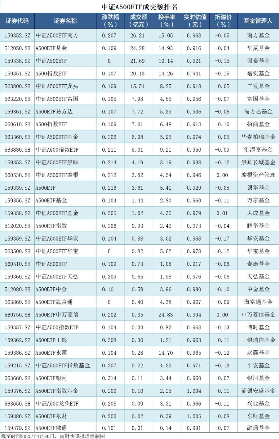 成交额方面,中证A500ETF合计163亿元,较上一交易日略微放量。南方中证A500ETF成交额26.21亿元,排名第一。