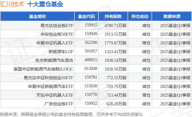 重仓汇川技术的前十大公募基金请见下表: