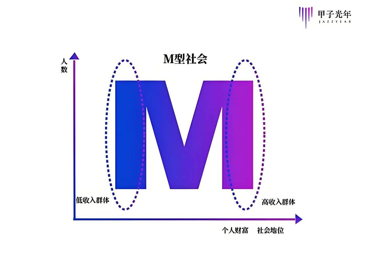 与此同时,整体的消费环境开始转变。在经济学概念中,有一个词叫“M型社会”,即经济增长的放缓,促使中产群体发生分化,一部分向高收入阶层攀升,而另一部分则滑落至较低收入区间,形成了消费群体两端集中、中间薄弱的独特形态。