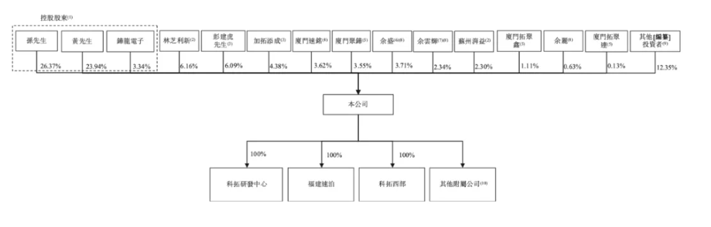 IPO前,科拓股份董事长&总经理孙龙喜直接持股26.37%,并与直接持股23.94%的黄金练,以及持股3.34%的铧龙电子(孙龙喜持股49%、黄金练持股51%)订立一致行动人协议,共同控制科拓股份53.65%股份。