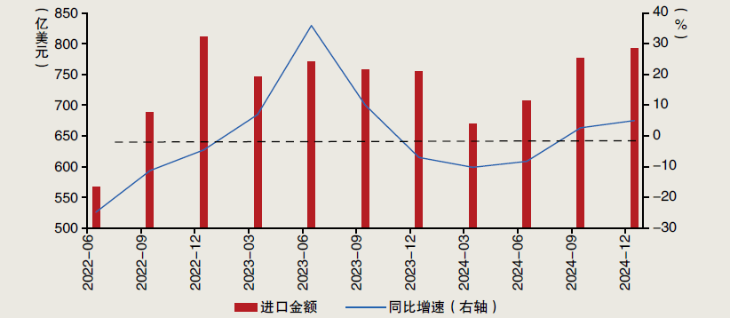 在2024年9月起加密货币在俄罗斯跨境贸易支付中的使用合法化后,俄罗斯公司可以更加便利地使用比特币和其他数字货币进行跨境支付(通常是使用比特币、以太坊和稳定币直接结算,或将其他国家的货币通过加密货币和稳定币兑换成俄罗斯卢布),预计2024年7月-2025年6月俄罗斯流入的加密货币将高于前12个月收到的1824.4亿美元。与此相应,俄罗斯的进口规模从2024年三季度开始重新恢复正增长(见图1)。