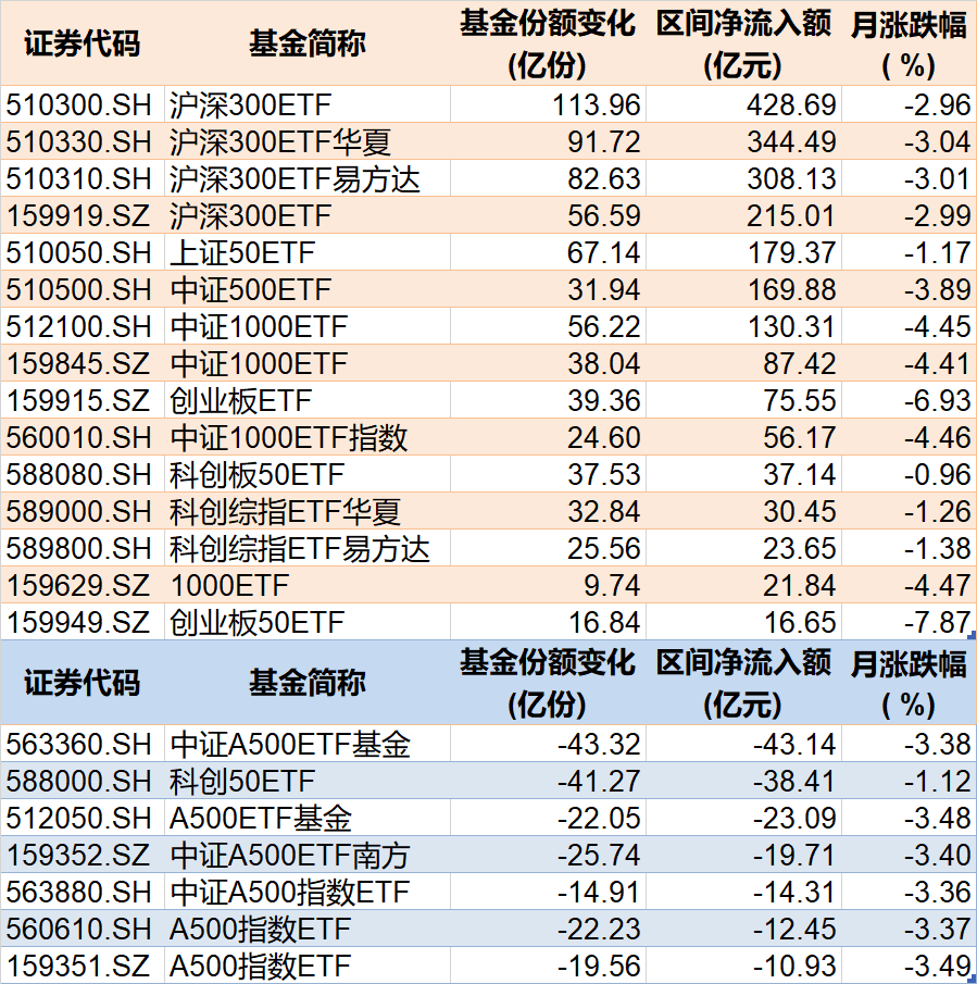 受盘面影响,相关指数ETF在4月集体走低,但资金却在大手笔扫货。