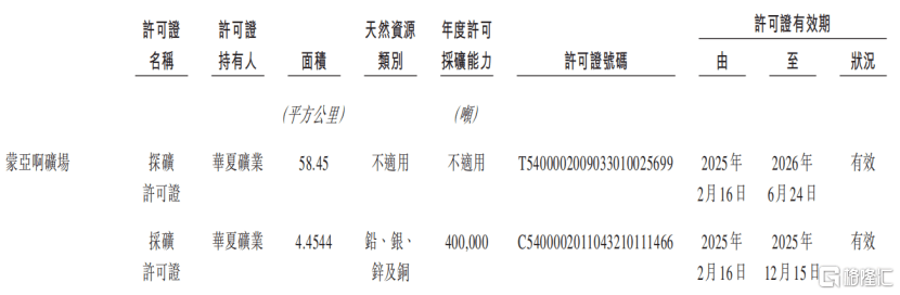 在蒙亚啊矿场持有有效的探矿许可证及采矿许可证,来源:招股书