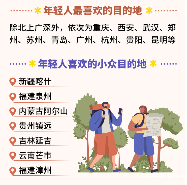 《报告》显示,年轻人最喜欢的目的地,除北上广深外,重庆、西安、武汉、郑州、苏州、青岛、广州、杭州、贵阳、昆明等地,尤其是郑州、青岛等成为新晋黑马。