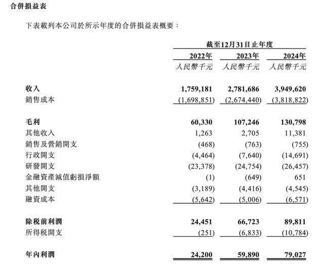 据招股书,2022年-2024年,建邦高科实现收入分别为17.59亿元、27.82亿元、39.5亿元;年内利润分别为2420万元、5989万元、7902.7万元。