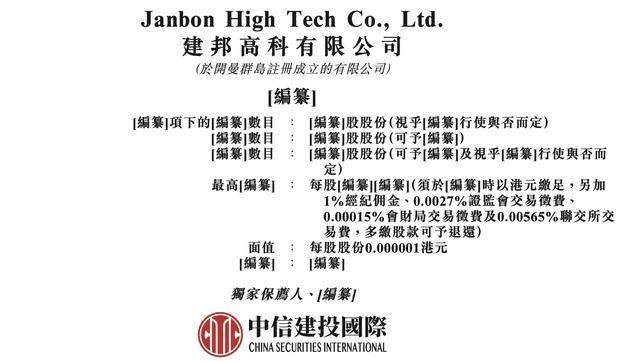 瑞财经 吴文婷 近日,建邦高科有限公司(以下简称“建邦高科”)在港交所递交招股书,中信建投国际为独家保荐人。