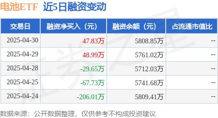 证券之星消息,4月30日,电池ETF(159755)融资买入366.9万元,融资偿还319.07万元,融资净买入47.83万元,融资余额5808.85万元。