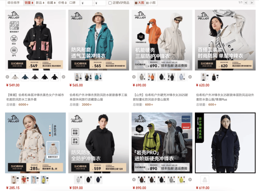 伯希和天猫旗舰店冲锋衣热卖排行展示。