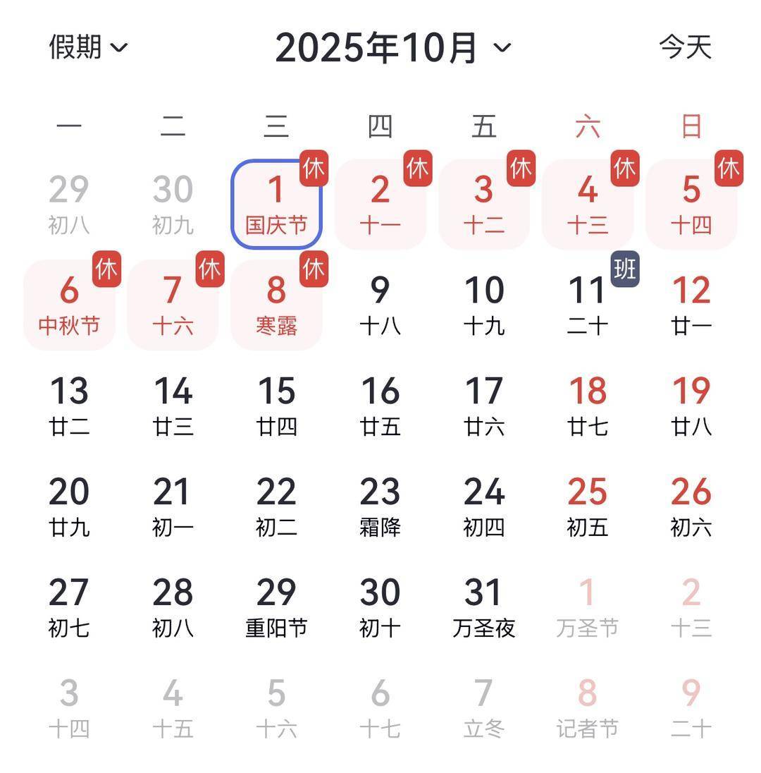 再打一波预告!端午假期后,下次放假为国庆节+中秋节,10月1日至10月8日放假,共8天。一大拨假期福利放送,你开始期待了吗?