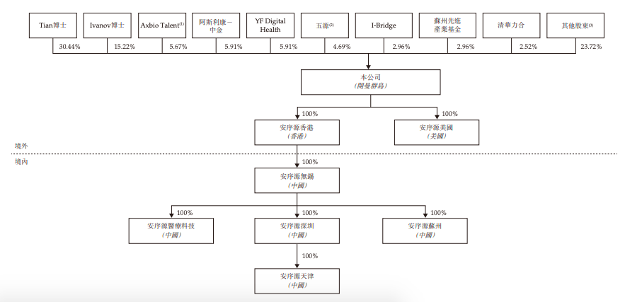在上市前的股东架构中,田晖持股30.44%,为单一最大股东。此外,Igor Ivanov博士持股为15.22%;中金公司旗下阿斯利康-中金持股5.91%,云锋基金通过YFDigital Health持股为5.91%,五源通过5YEvolution、5YEvolution Co-Investment合计持股4.68%,力合科创通过清华力合持股2.52%,汕头华润持股1.66%。