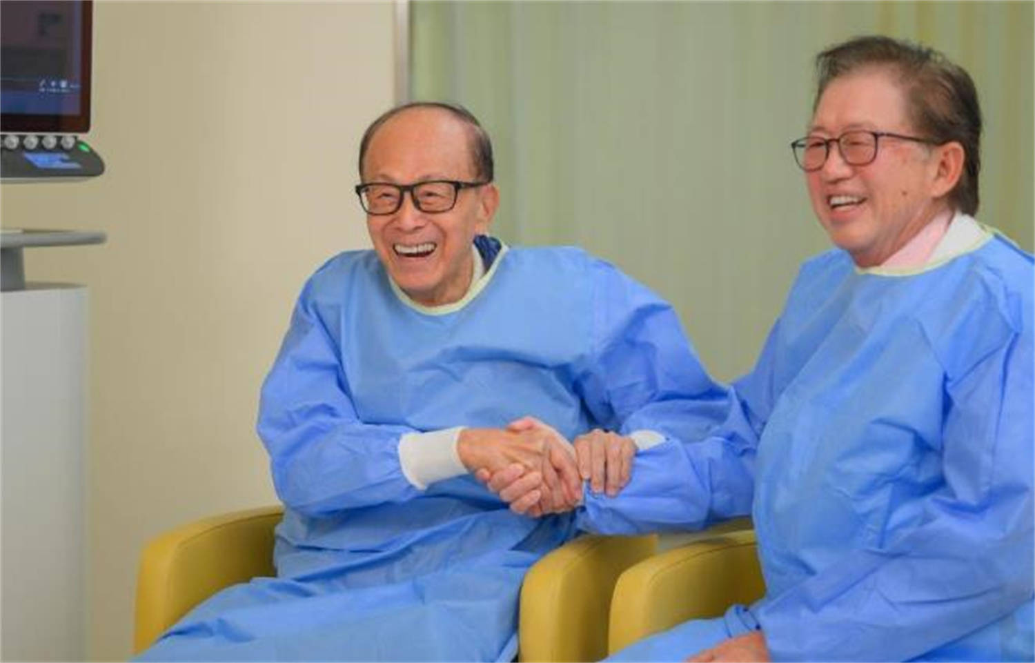 这边长和集团和国家监管“斗智斗勇”,那边李嘉诚本人也没闲着。4 月 29 日,已经 96 岁高龄的李嘉诚罕见现身香港养和医院。这养和医院可不一般,在富豪圈里那是大名鼎鼎,赌王何鸿燊当年病重,就在这里接受治疗,花了好几千万。李嘉诚穿着蓝色防护服,坐在椅子上,对眼前的高精度抗癌仪器充满好奇,一边摸索一边笑得满脸皱纹,牙齿洁白整齐,看着精气神还不错。他不仅自己动手参与实验,成了现场众人关注的焦点,还和医院院长握手交谈,状态十分不错。做完实验后,他还感叹,能给病人多一种治疗选择是件好事,对患者来说是福气。
