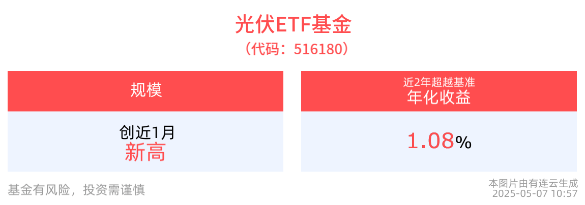 规模方面,光伏ETF基金最新规模达5963.50万元,创近1月新高。