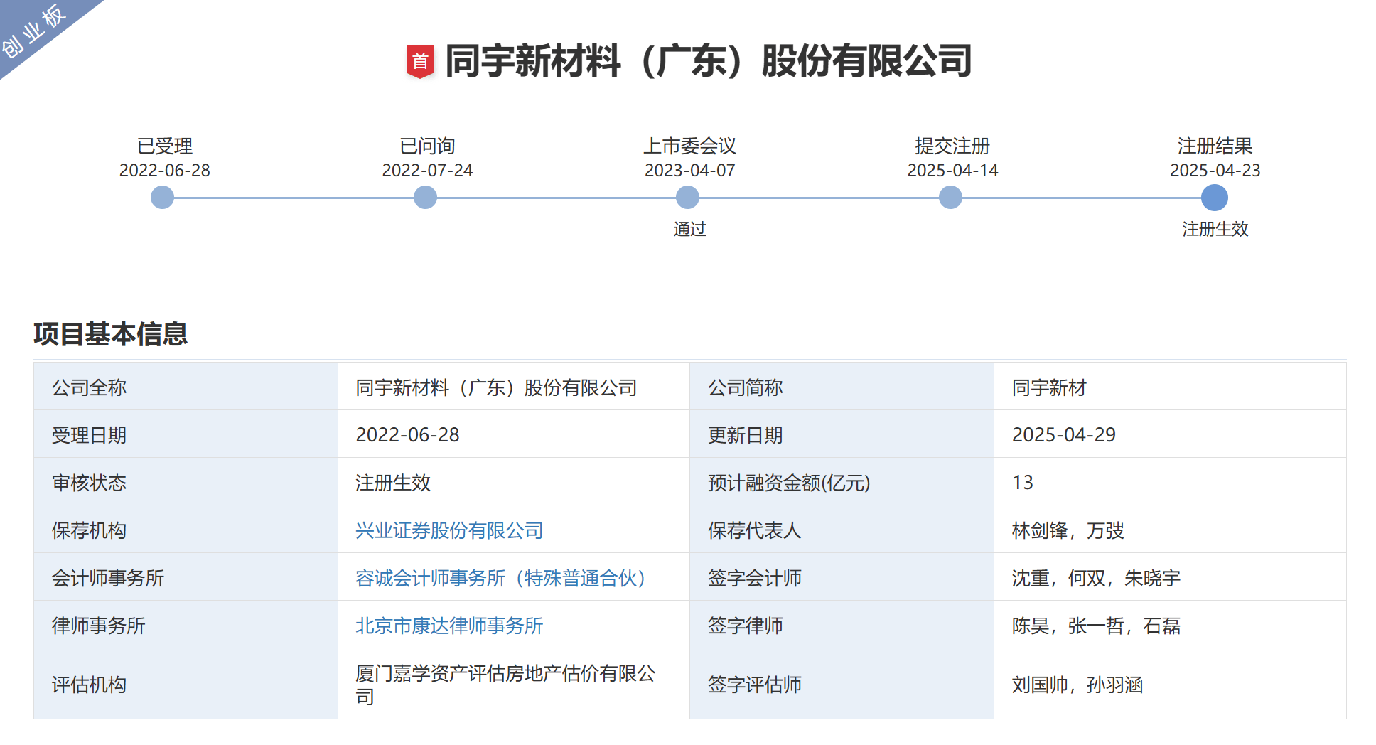 同宇新材料(广东)股份有限公司(简称“同宇新材”)的创业板IPO之路几经波折,近期终于迎来注册生效的关键节点。