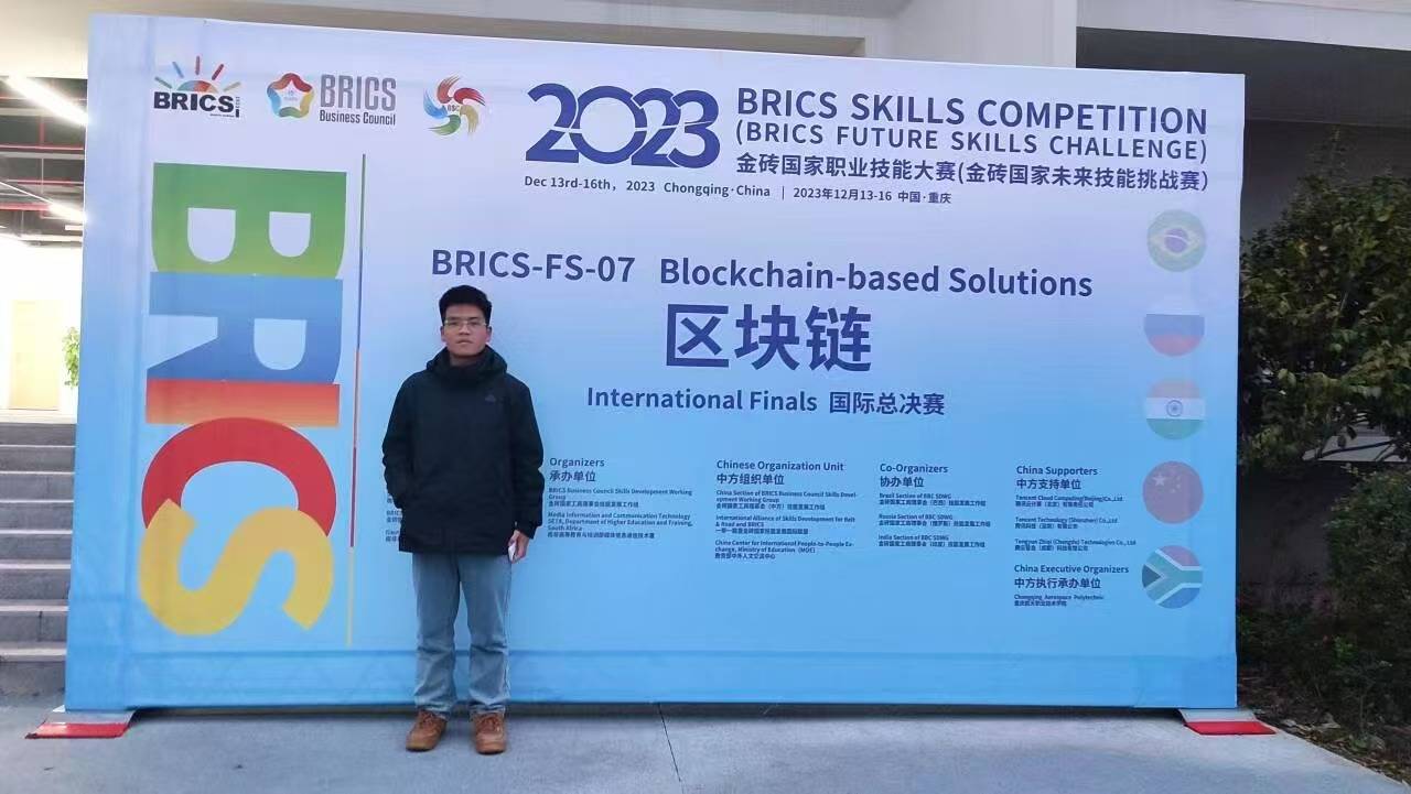 翻开姜必相的获奖履历,一串闪光的足迹跃然眼前:从2023年市赛、省赛“双冠王”,到金砖国家大赛二等奖,再到世赛银奖,这位职教学子用两年时间完成了从“青铜”到“王者”的蜕变。