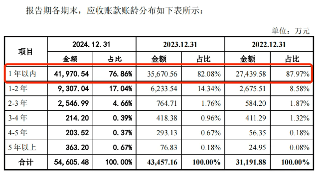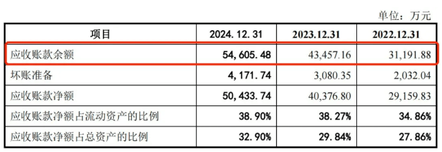 在2024年,公司应收账款余额占当期营业收入的比例高达54.33%。这也意味着,公司半数营业收入都是“只见数字不见现金”的应收款项,这对公司资金周转是个考验。