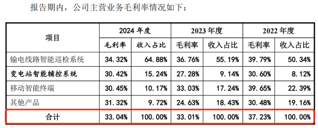 招股书显示,信通电子的主营业务毛利率分别为37.23%、33.01%和33.04%。2023年,毛利率出现下降,2024年时毛利率略有回升,但和2022年相比仍下降了约4个百分点。