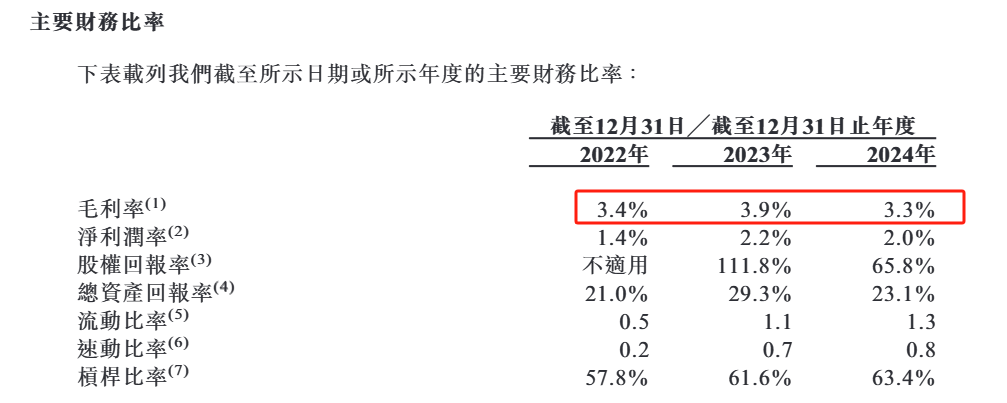 建邦高科的毛利率持续较低,过去三年均不足4%。同时,公司收入较为依赖核心客户,2022年至2024年,公司来自五大客户的合并收入占相关期间总收入的比例均超过80%。
