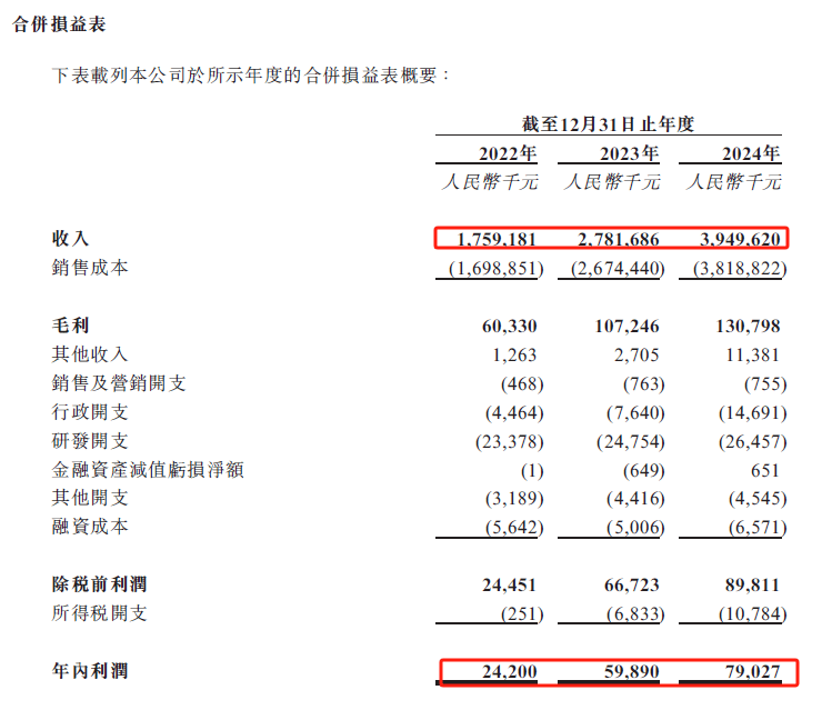 2022年至2024年,建邦高科收入从17.59亿元上升至39.5亿元。同期,公司的年内利润从0.24亿元上升至0.79亿元。