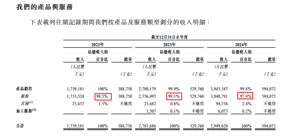 数据显示,2024年,建邦高科银粉收入占总收入的百分比达97.4%。