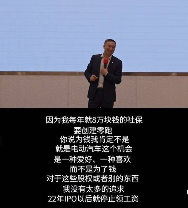 朱江明在视频中表示,自己当前年薪为8万元,仅用于每月缴纳社保,与网传年薪811.9万元信息不符。此前,朱江明在一次演讲中曾谈及自己为何要创业,他表示,所有的股权期权激励他都不享受,而且一股也没要,每一次最困难最需要投钱的时候自己带头投钱,不是说一定要股份多。自己创建零跑并不是为了钱,选择进入电动汽车领域更多的是看到了这个机会,是一种爱好、一种喜欢,而不是为了钱。对于股权或者别的东西,自己没有太多的追求。他还表示,自从零跑汽车22年IPO以后,自己就停止领工资,仅有每年8万元的社保,以至于自己需要办签证的时候没有流水而被拒。