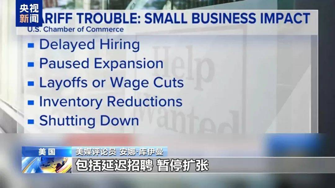 美媒评论员 安娜·库伊曼:他们(小企业主)面临多重困难的抉择,包括延迟招聘、暂停扩张、实施裁员、减少库存,甚至可能需要关门停业。有些寻求本地供应商或者尽可能地寻找低关税国家的供应商,其他的缩减库存、减缓发展速度或者拿出紧急贷款(应急)。当价格高企时,他们(小企业主)在做任何抉择时都必须十分小心,以免吓跑消费者。