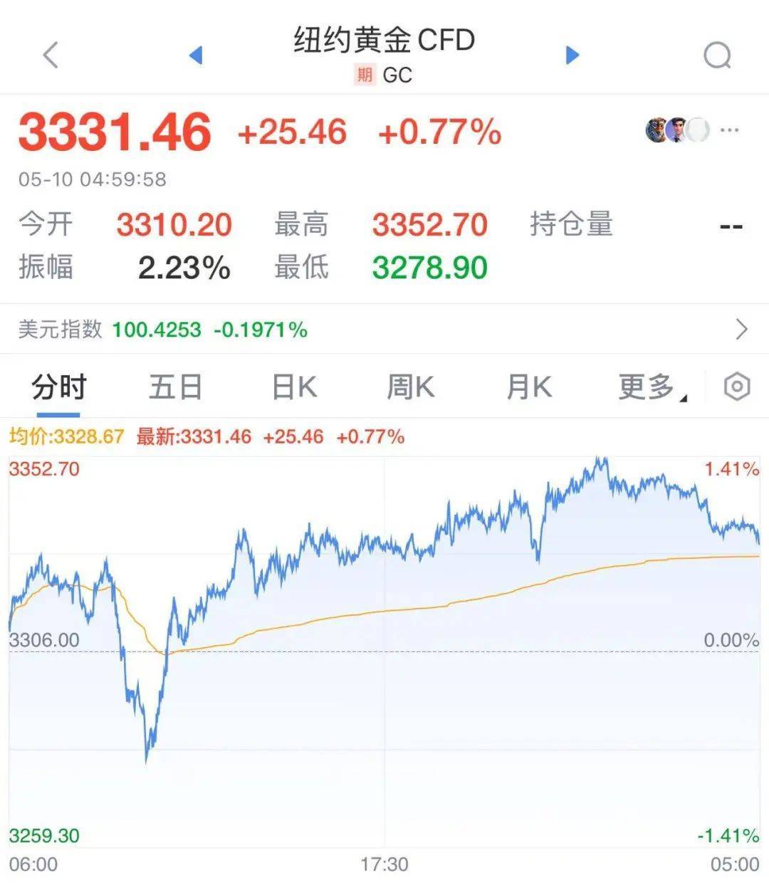 国际金价上涨,现货黄金涨0.65%,报3326.46美元/盎司;纽约黄金期货涨0.77%,报3331.46美元/盎司。