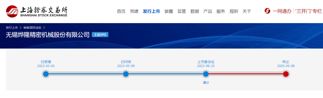 上海证券报记者从上交所获悉,过会已一年多的无锡烨隆精密机械股份有限公司(下称“烨隆股份”)5月8日撤回上市申请,上交所主板IPO终止。