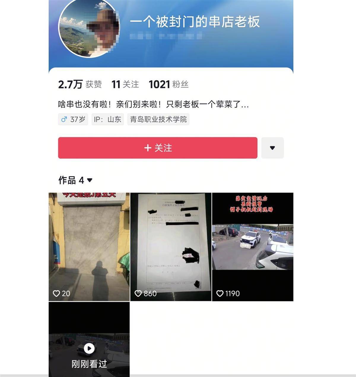 近日,山东青岛有网友接连爆料称,自己在青岛市即墨区所开的炸串店大门,于5月8日凌晨被几名不明人士砌墙封堵,引发网络热议。令人意想不到的是,不少网友在店主的短视频账号评论区晒出在他门店打卡照片,并与店主频频互动交流,涉事门店也成为当地的网红打卡点。
