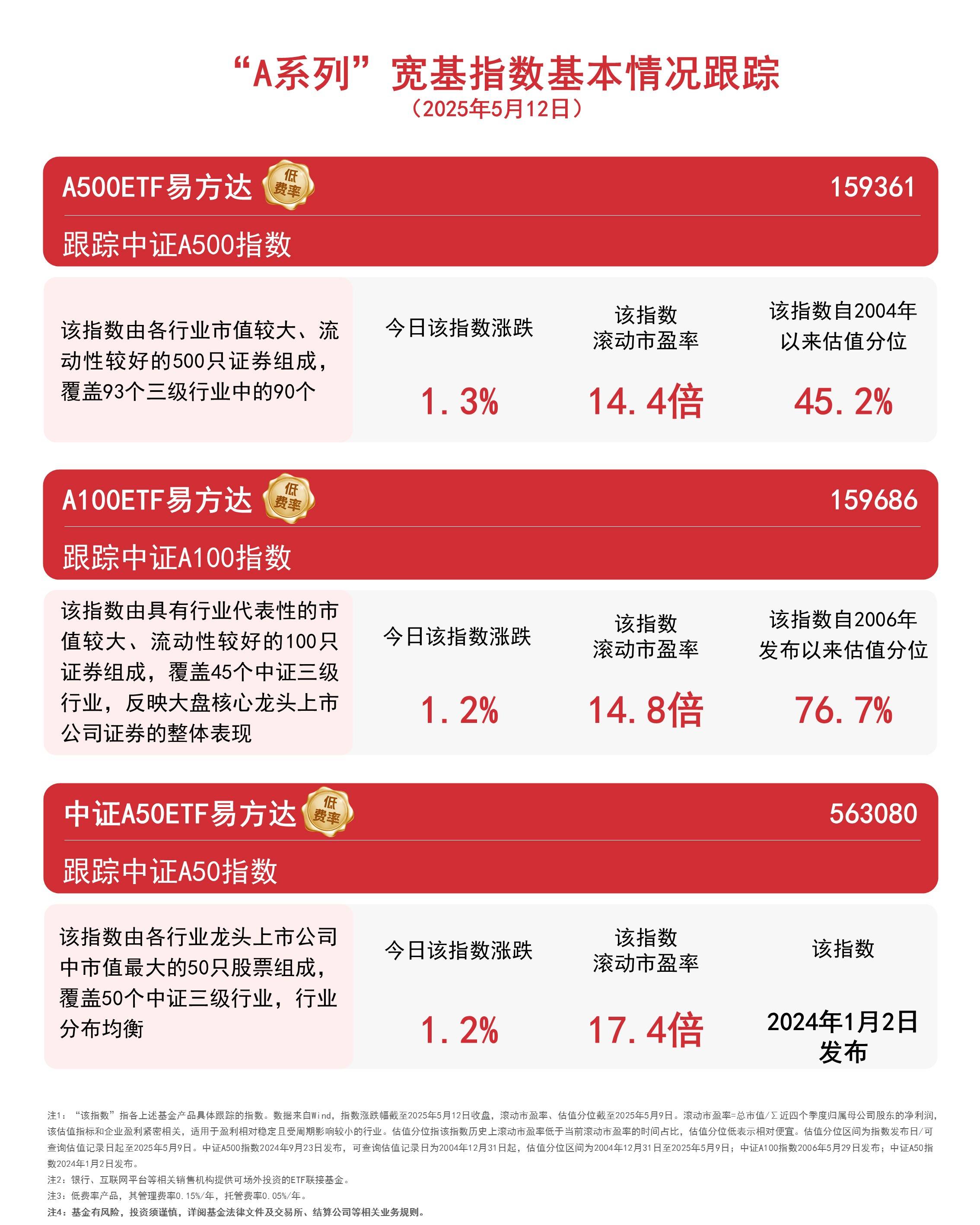 截至收盘,中证A500指数上涨1.3%,中证A100指数、中证A50指数均上涨1.2%。