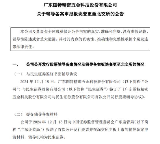 广东炬森精密科技股份有限公司(以下简称“炬森精密”)的IPO进程堪称“极速”。2025年4月25日挂牌新三板,4月29日提交北交所辅导备案,5月6日即进入辅导期。这一速度凸显了企业对资本市场的强烈渴望,同时也反映出北交所对创新型中小企业的吸引力。炬森精密专注于精密五金部件,其快速推进IPO或为抢占智能家居五金赛道先机。