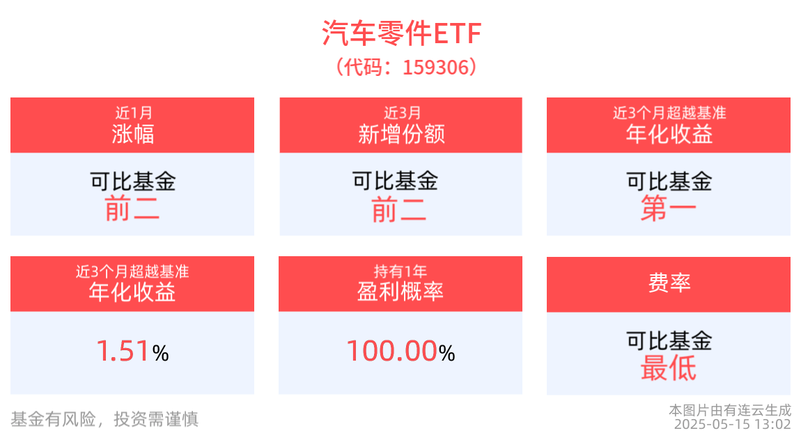汽车零件ETF(159306)下跌1.06%,最新报价1.12元。拉长时间看,截至2025年5月14日,汽车零件ETF近1周累计上涨1.07%,涨幅排名可比基金2/4。